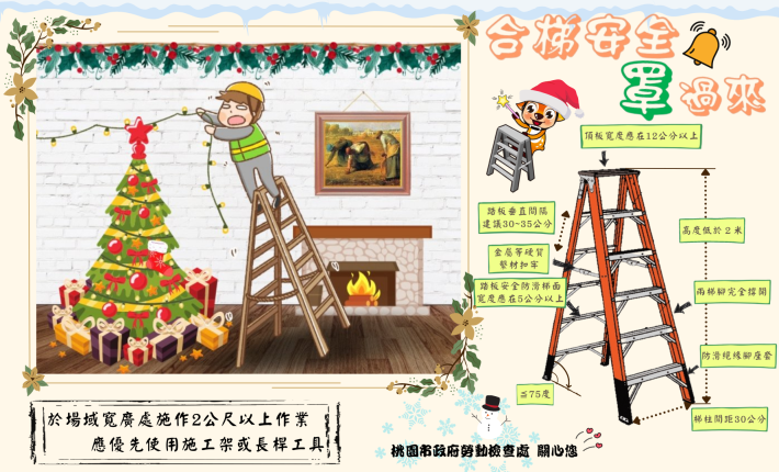桃園市政府勞動檢查處-使用合梯作業時,多加留意自身安全